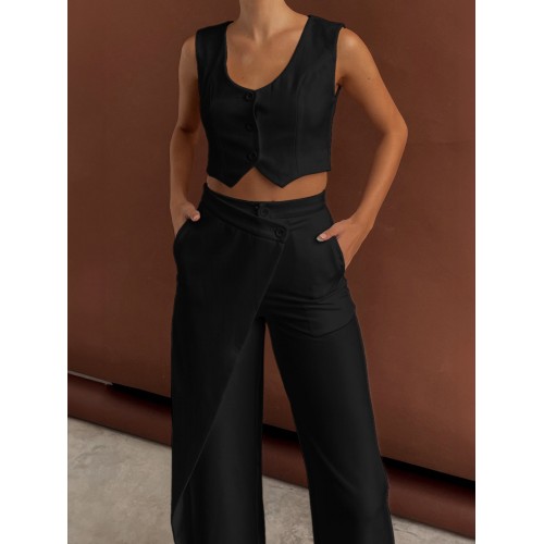 Product Code: solid-asymmetrical-straight-leg-pants-set