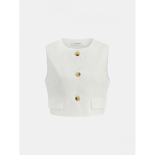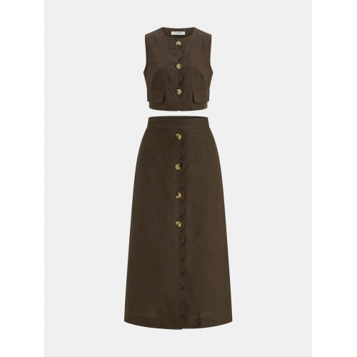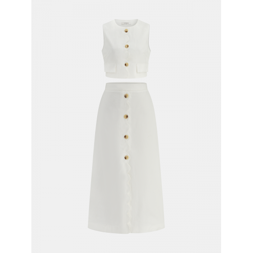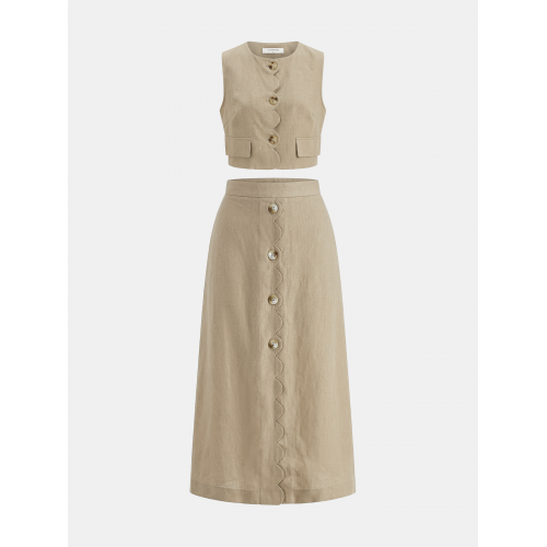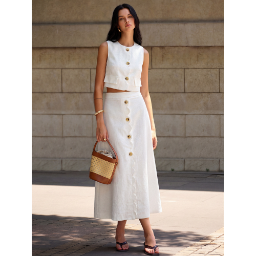 Cotton Linen Scallop Trim Vest & Skirt Set